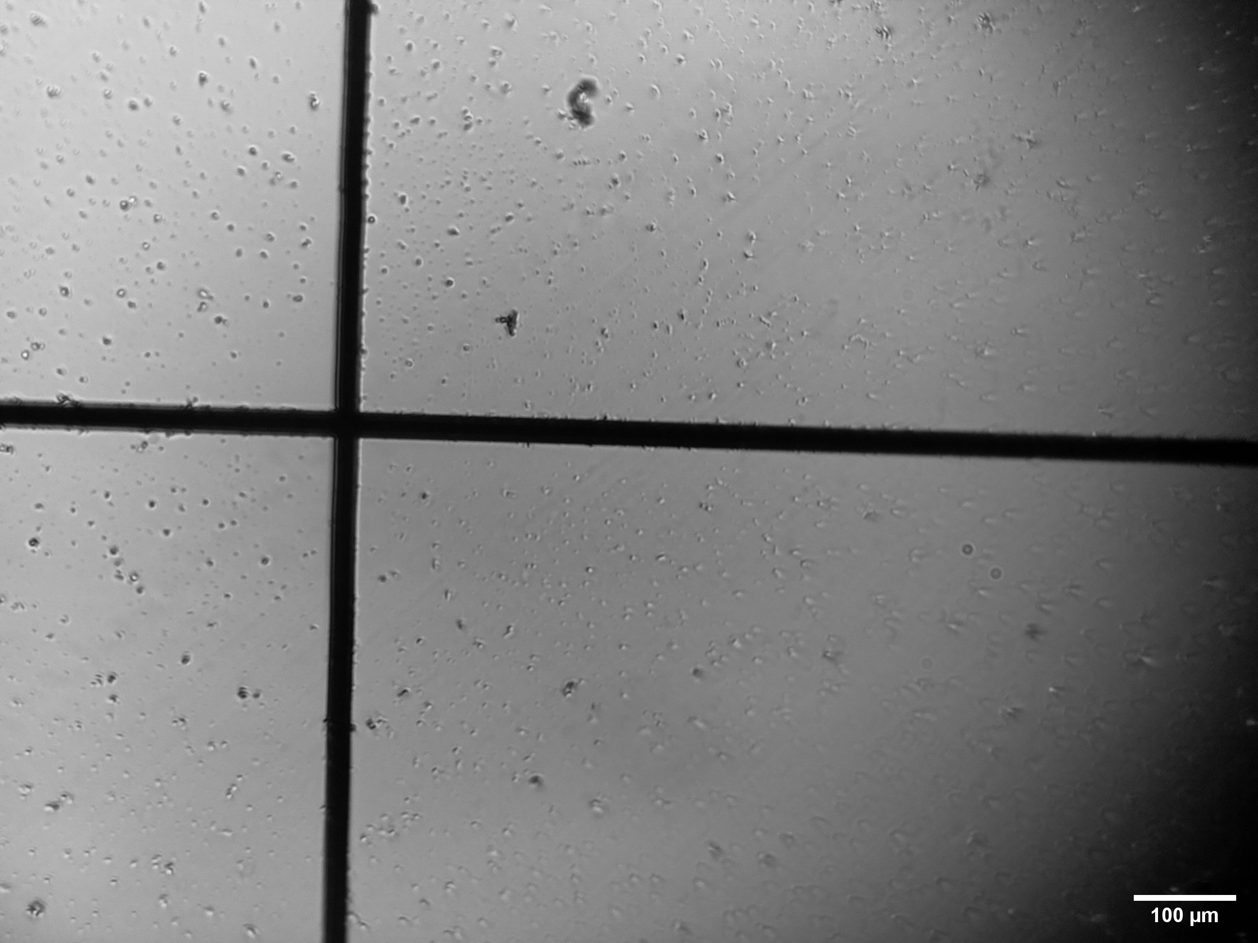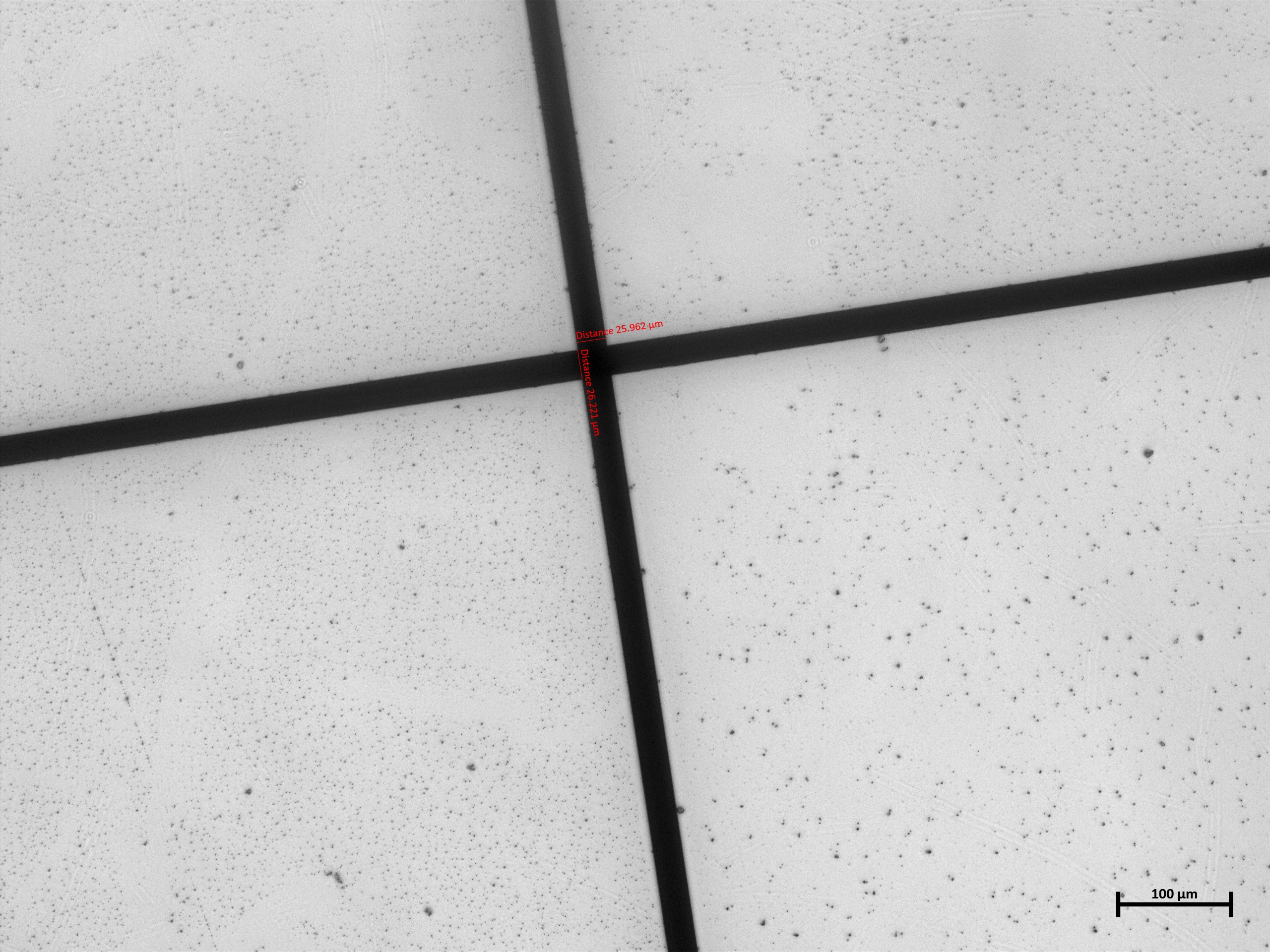 Here’s a picture of a mesh micrometer with line thickness of 26 um taken with ZEISS LSM 900 10 times objective and the v6 low cost optics module with v1.3 camera: